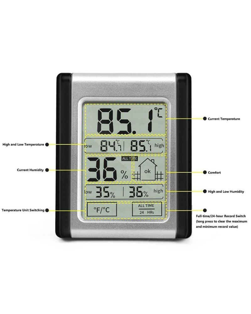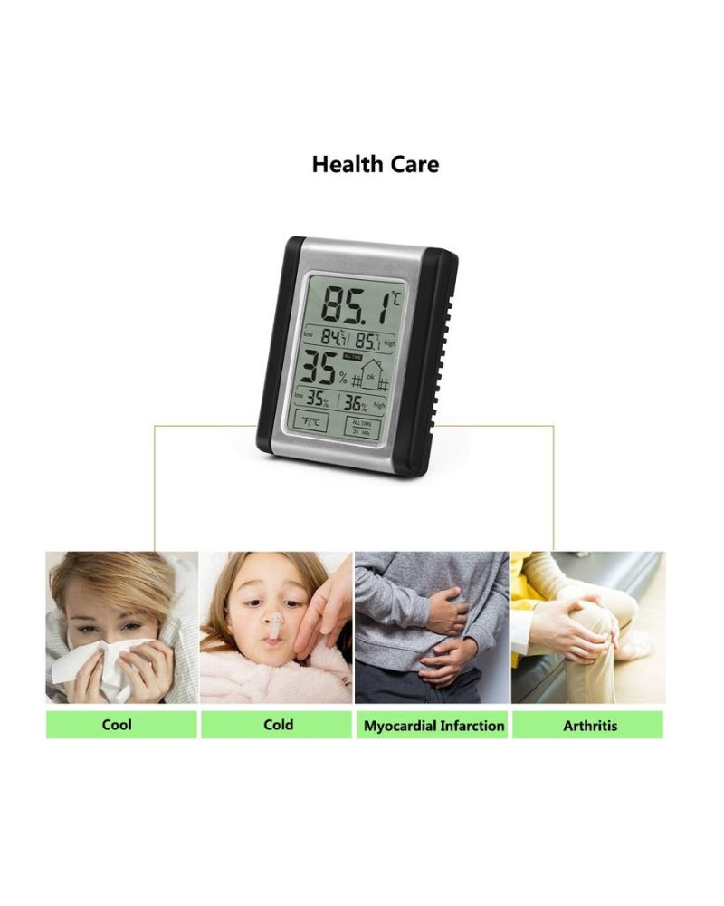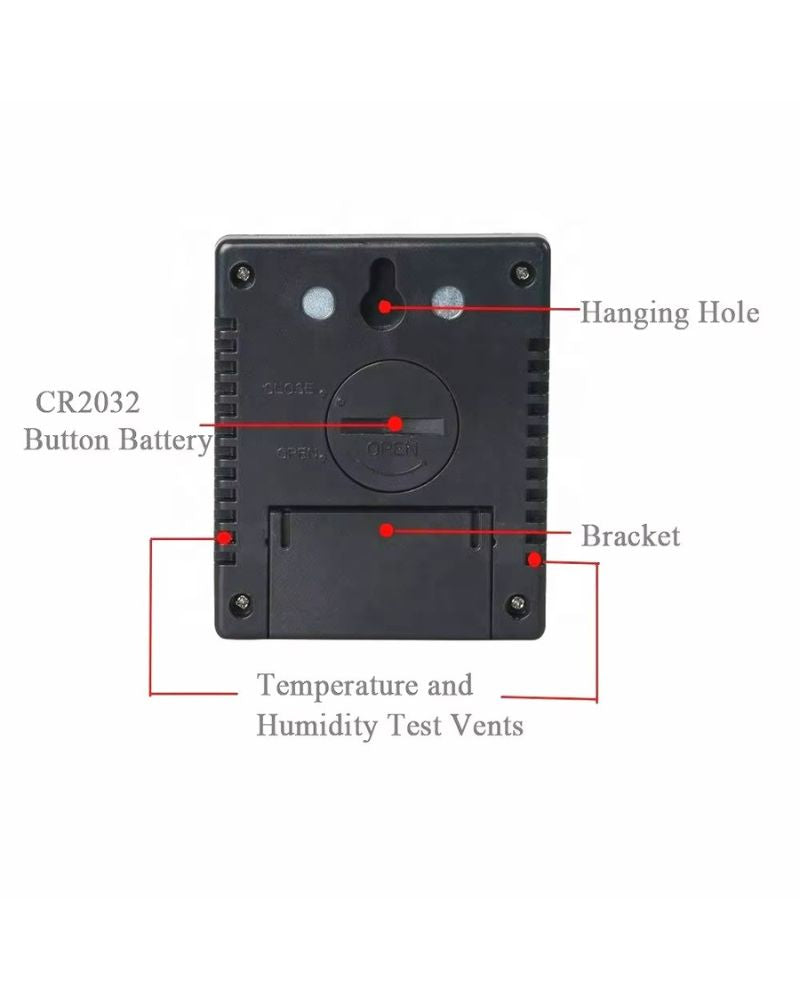 Ideal for home use; can be placed on a desk or hung on a wall to provide real-time temperature and humidity monitoring.