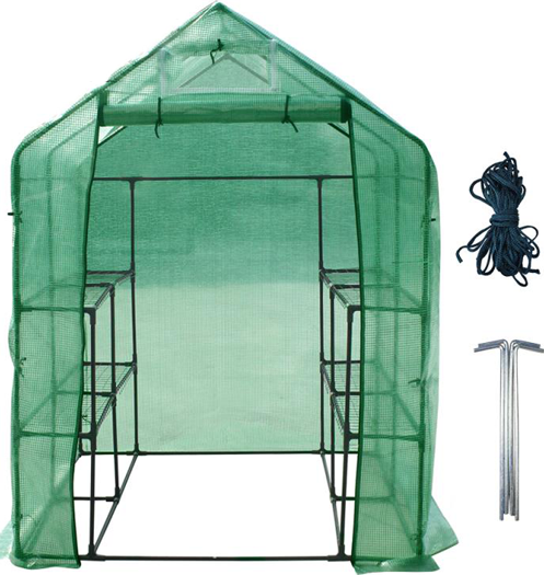 Comes with ropes and anchors, which will securely fix the greenhouse to the ground to add stability. The walk-in style allows for easy access to water and feeds plants. Zippered roll-up door for better ventilation.
