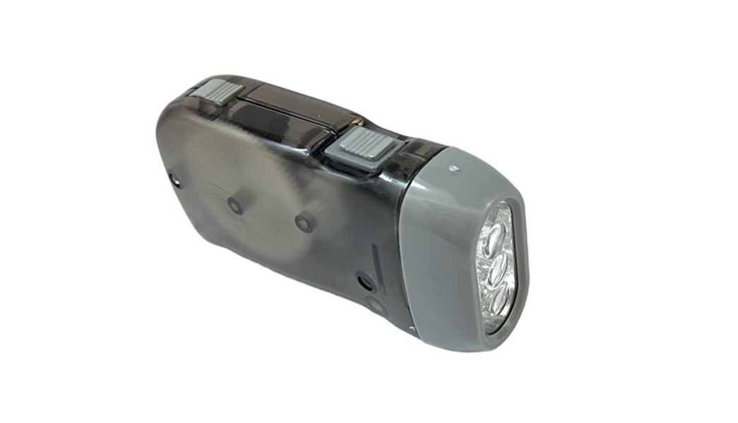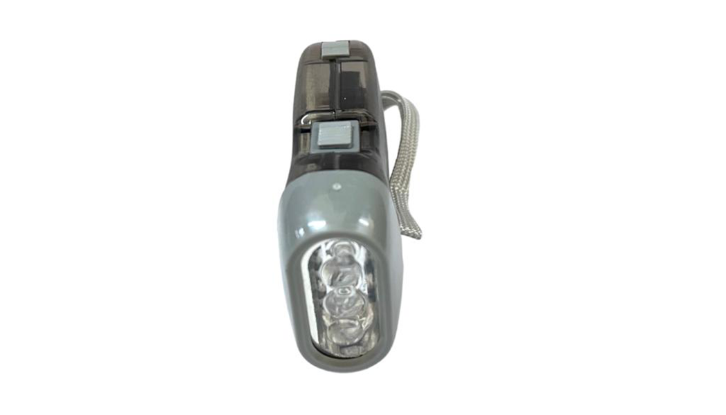 This flashlight does not need any battery or bulb, simply shake to use. Using this torch may strengthen the user's grip to promote better blood circulation drop the handle down and press continuously for some time to automatically generate power.