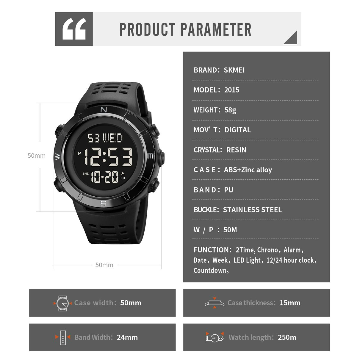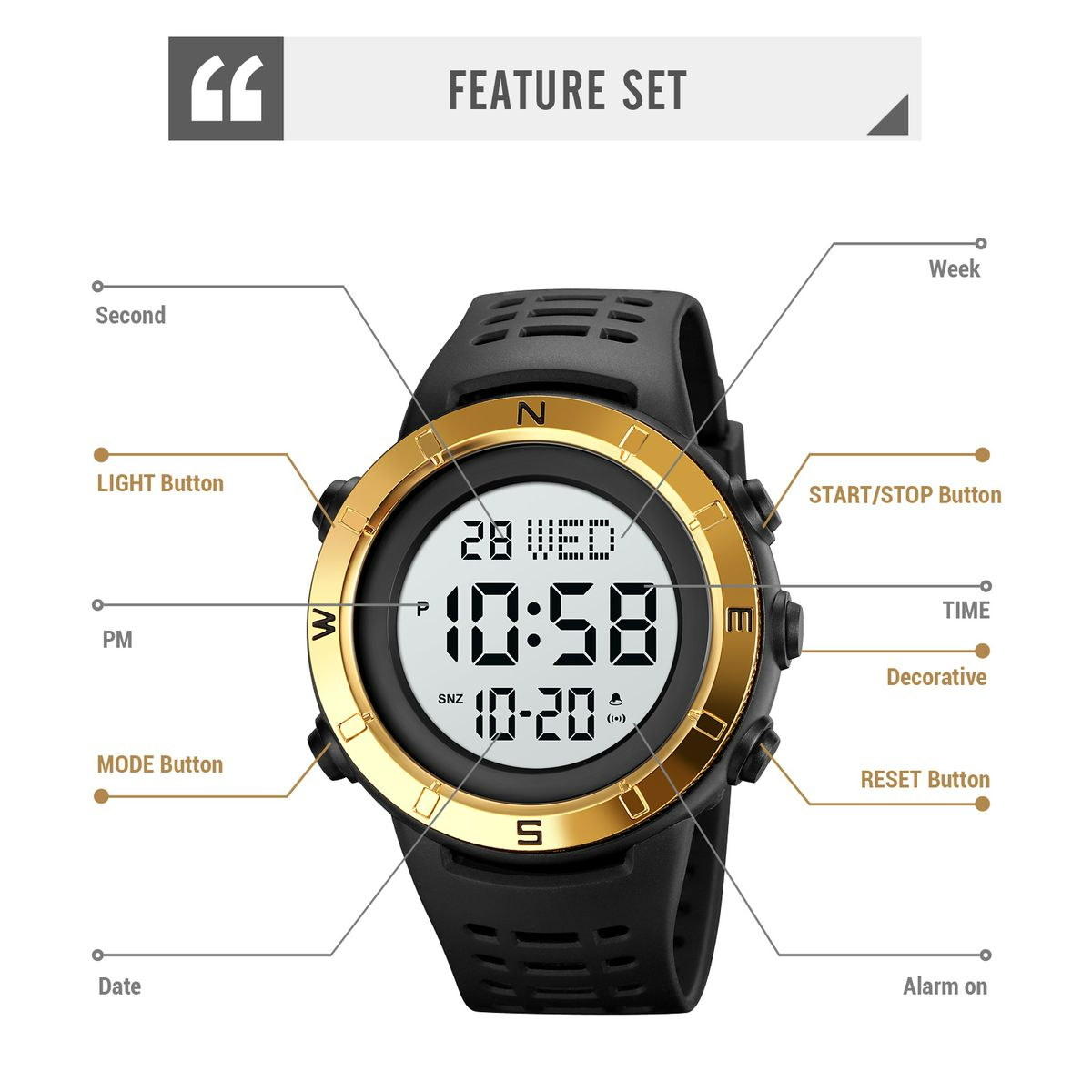 Feature: STOP WATCH,Back Light,Shock Resistant,LED Display,Luminous,Auto Date,Chronograph,Water Resistant,Alarm,Week Display
