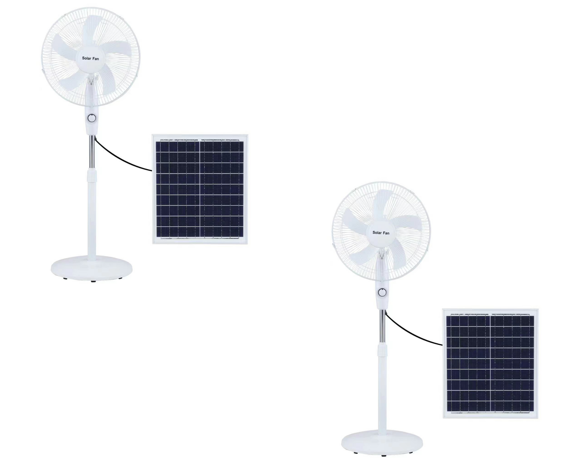 Description Great Solar pedestal fan. Has a rechargeable battery inside the fan. Comes with a Solar panel and AC adapter for the option of recharging through the sun or electricity. Power: 15w Solar Panel: 12w Polysilicon panel 9v Battery Capacity: 18650 Lithium 12000mah Charger: 2A Adapter Charger Wind Type: 3 gears, soft and strong Charging Time: 4-6h Duration: About 7 hours in level 3 and about 9 hours in level 1 Fan size: 16 inches, 60cm high, 43cm wide Solar panel Size: 350x290mm What`s in the box 1 x Solar 40cm Pedestal Fan With Panel and Rechargeable Battery