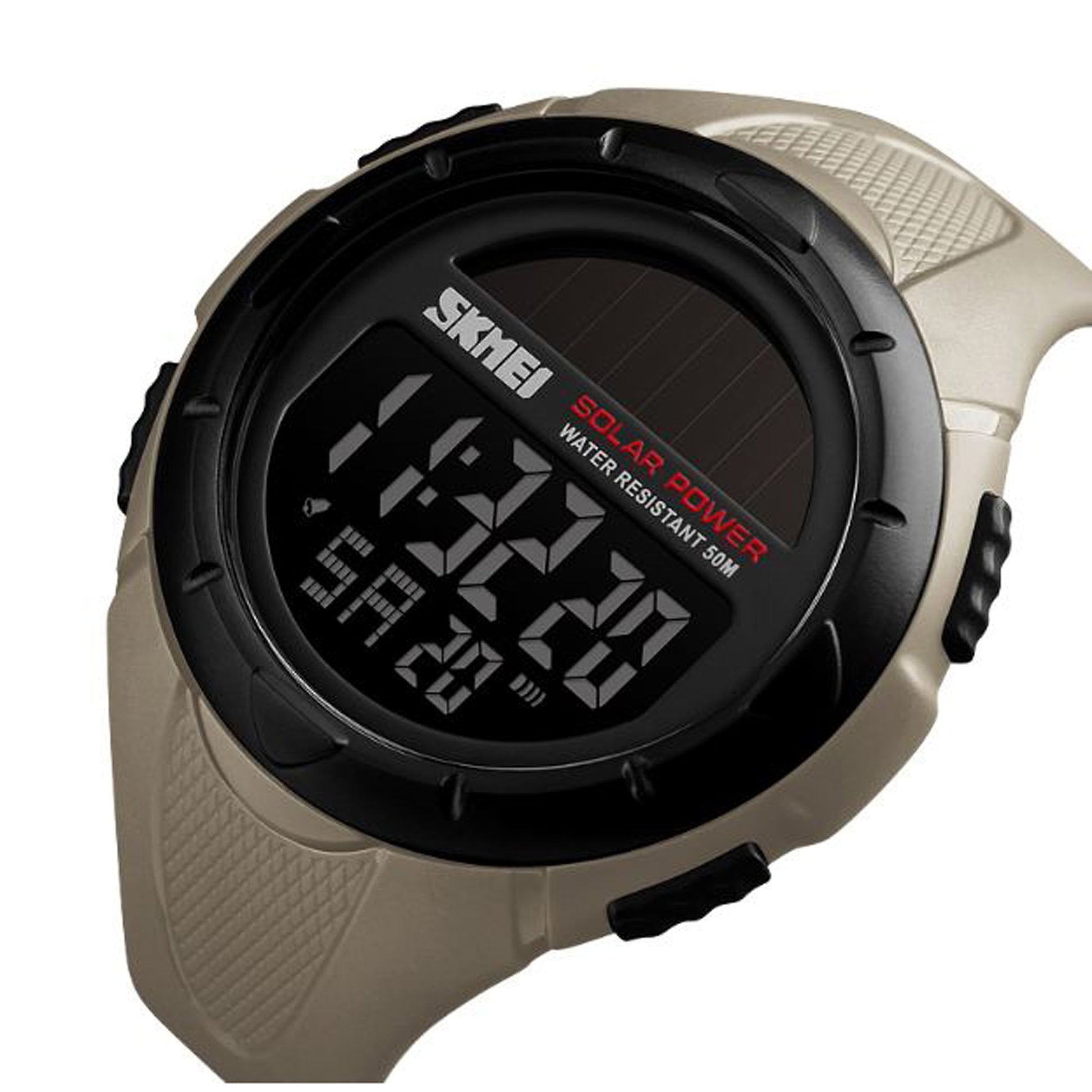 Solar Watch - 1405 - Khaki -Working time: 24hours -Charging time: 6-8hours -Battery type: 3.7v400mAh Polymer battery -Alarm volume: 110d -IP rate: IP65 -Materials: ABS -Solar Panel: 5v80mAh Polysilicon -1-year Guarantee -Water resistant What's in the box. 1 x Solar Watch