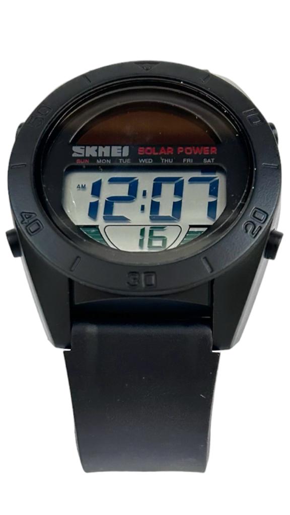 Solar Watch - 1592 - Black -Working time: 24hours -Charging time: 6-8hours -Battery type: 3.7v400mAh Polymer battery -Alarm volume: 110d -IP rate: IP65 -Materials: ABS -Solar Panel: 5v80mAh Polysilicon -1-year Guarantee -Water resistant What's in the box. 1 x Solar Watch